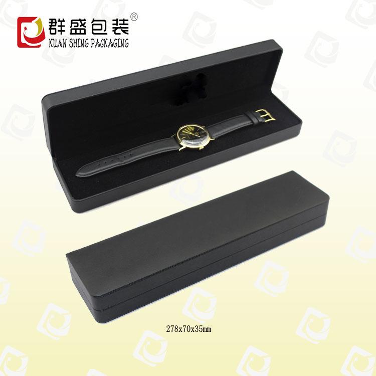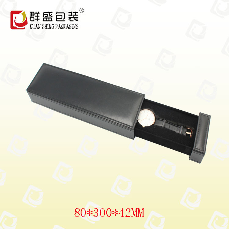 深圳手表盒廠家訂制高檔長手表盒黑色皮革手表盒膠胚盒