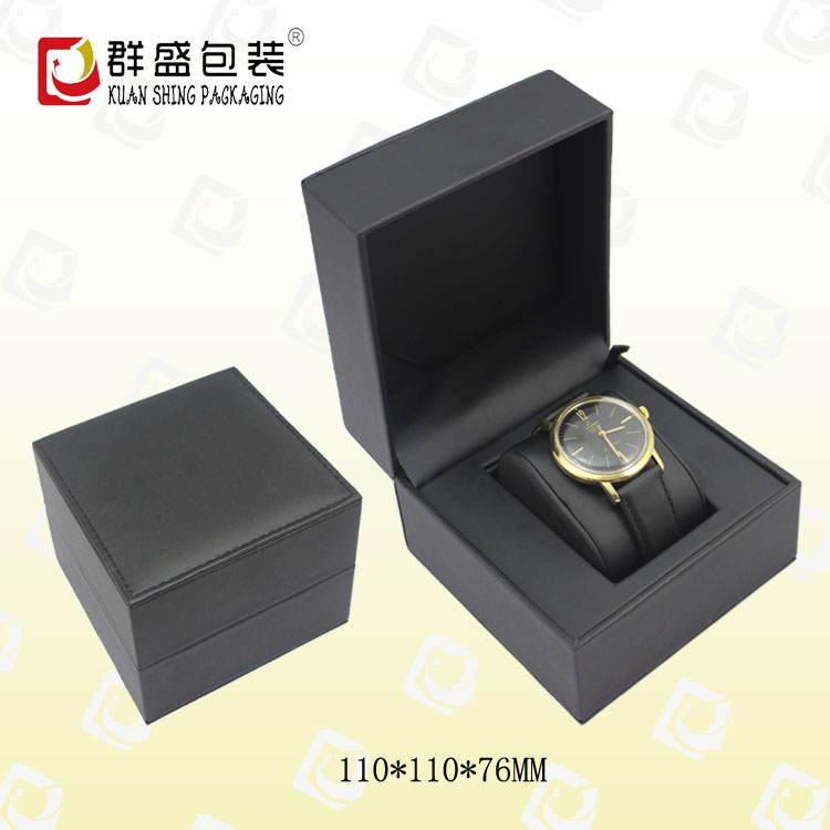手表包裝盒生產(chǎn)廠家定做黑色皮革小手表盒
