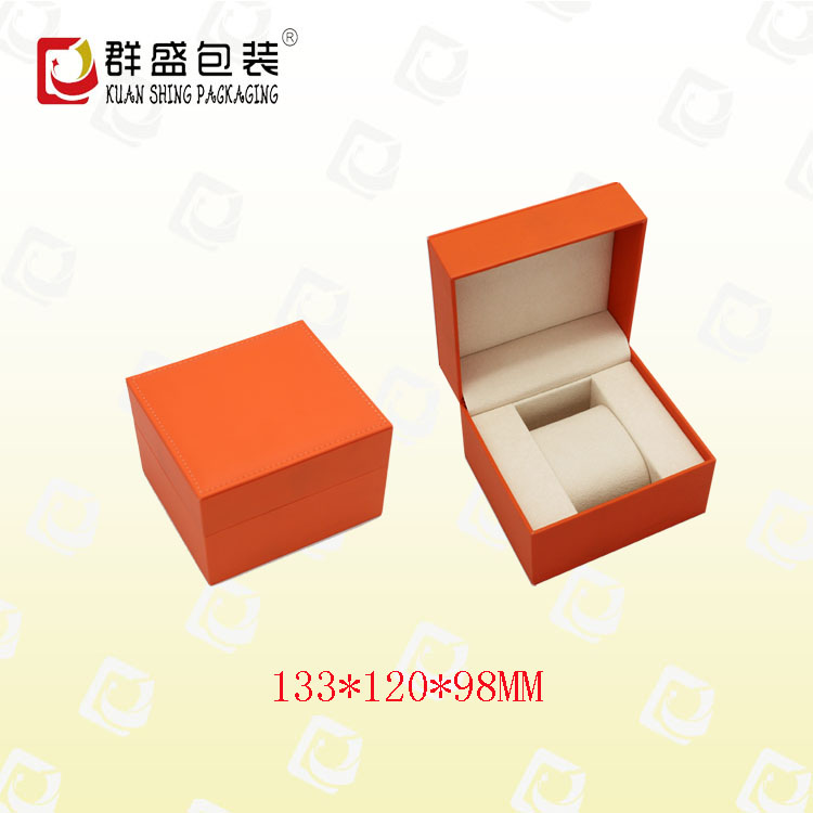 創(chuàng)意斜邊塑料手表盒 橙色高檔皮革手表包裝盒