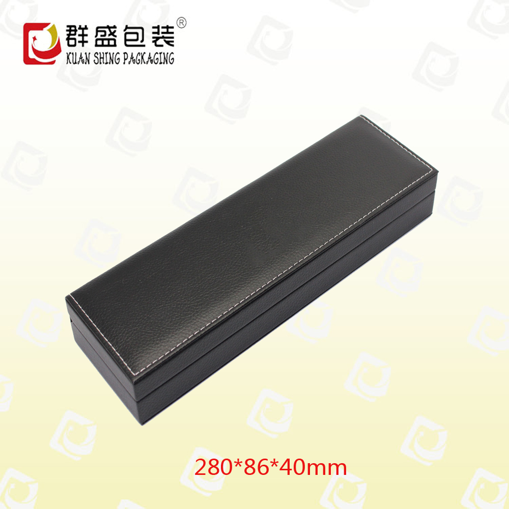 編號:QS-JS087Z 規(guī)格:280*86*40mm 起訂量:1000PCS LOGO:盒面無LOGO 顏色:黑色 樣期:七天 貨期:確認(rèn)大貨樣20個工作日 描述:PU皮包膠胚,內(nèi)飾為絨布