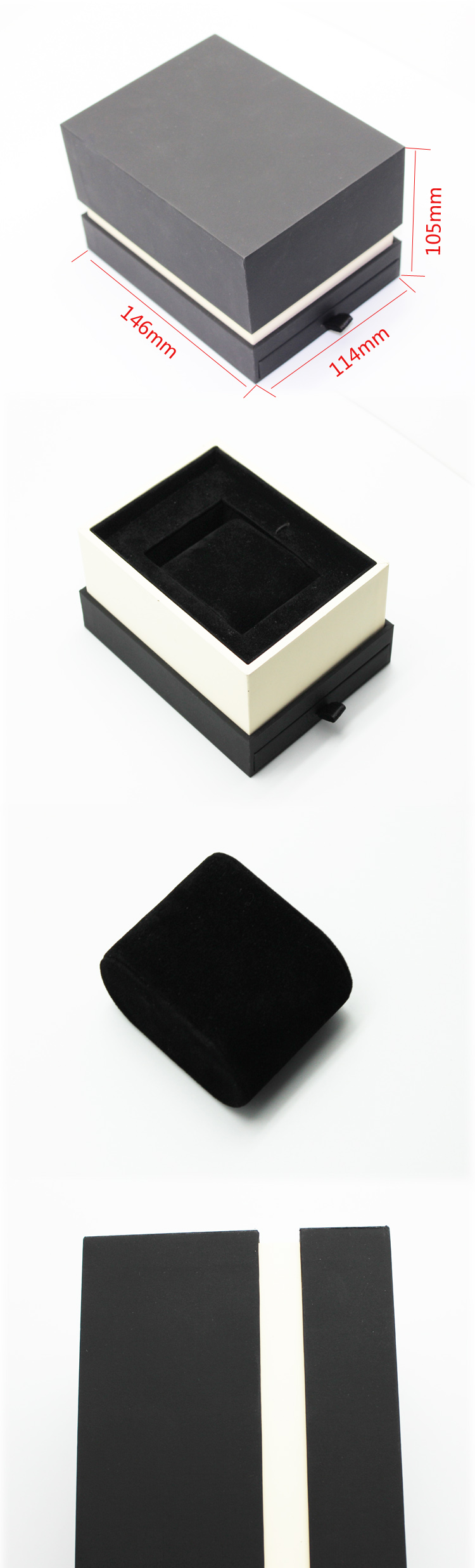 編號:QS-JZ035Z 規(guī)格:114*146*105MM 起訂量:1000PCS LOGO:盒面無LOGO 顏色:黑色 樣期:七天 貨期:確認(rèn)大貨樣20個工作日 描述:紙質(zhì)包膠胚,內(nèi)飾為絨布,配工字形枕頭