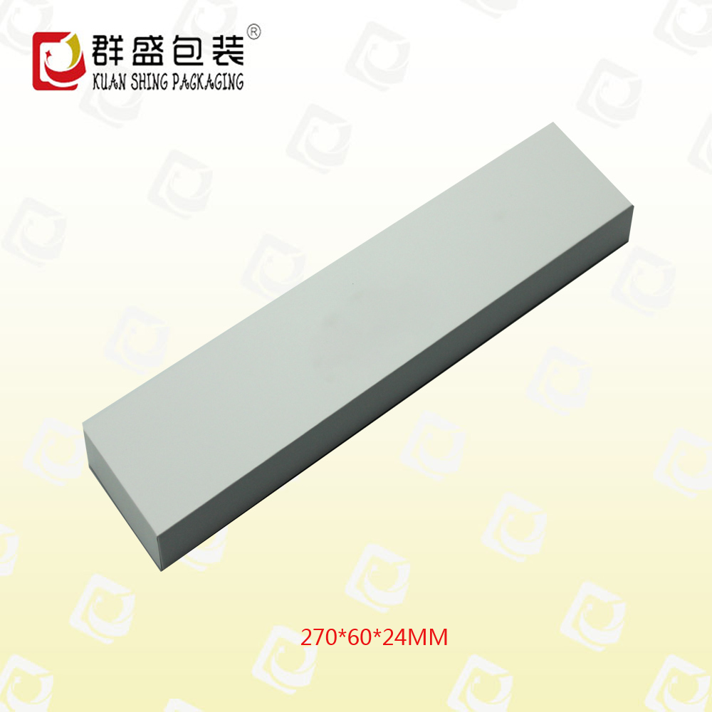 編號:QS-JS058Z 規(guī)格:270*60*24MM 起訂量:1000PCS LOGO:盒面無LOGO 顏色:白色 樣期:七天 貨期:確認(rèn)大貨樣20個工作日 描述:紙質(zhì)包膠胚,內(nèi)飾為絨布,