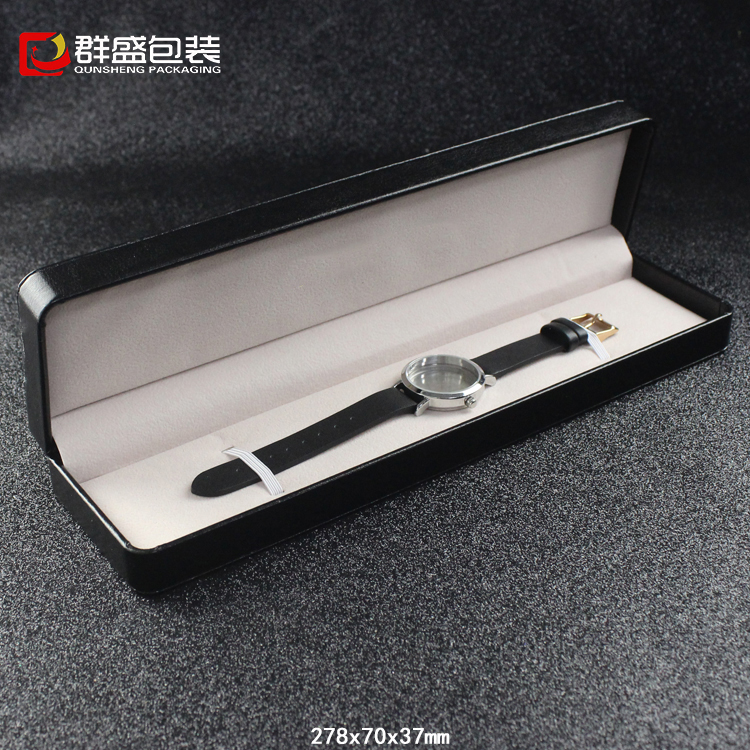 編號(hào):QS-JS105Z 規(guī)格:278X70X37MM 起訂量:1000PCS LOGO:盒面壓印 顏色:黑色 樣期:七天 貨期:確認(rèn)大貨樣20個(gè)工作日 描述:PU皮包膠胚,內(nèi)飾為絨布