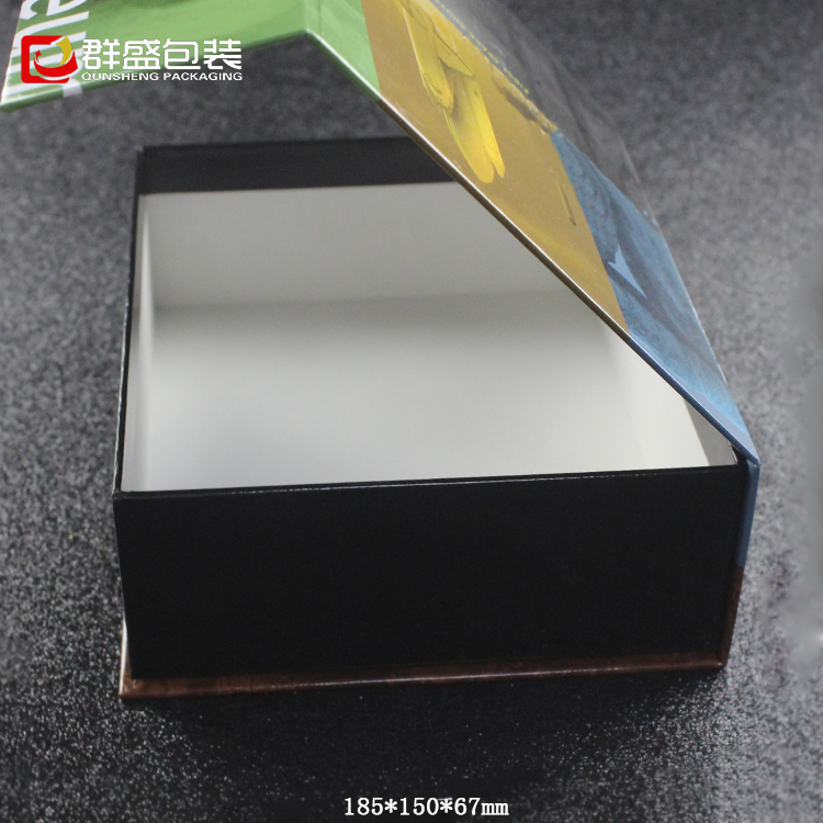 編號(hào):QS-JS006L 規(guī)格:185X150X67mm 起訂量:1000PCS LOGO:盒面燙金 顏色:黑色 樣期:七天 貨期:確認(rèn)大貨樣20個(gè)工作日 描述:書形翻蓋紙盒, 外包特種紙, 內(nèi)空